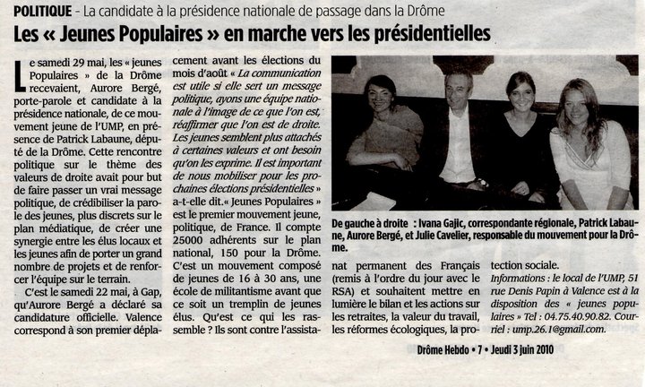 Au cours de ce passage haut-pyrénéen, les jeunes populaires ont voulu aussi changer l'image du jeune de droite. À travers ce mouvement, étroitement associé au parti présidentiel, ils veulent faire entendre leur voix et leurs idées dans une société en profond changement. L'occasion aussi pour eux de mener une campagne auprès de leurs militants dans l'optique de l'élection du président national des jeunes populaires. Pour cela, ils ont reçu la visite d'Aurore Bergé, candidate aux côtés du militant des Hautes-Pyrénées Franck Layre-Cassou, jeune populaire et conseiller municipal à Cauterets.
