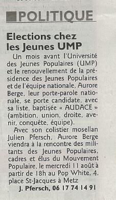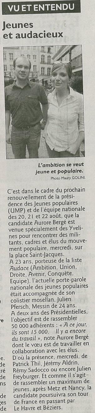 Aurore Bergé, 23 ans, se présente à la présidence du bureau national des Jeunes UMP, dont l'élection aura lieu en 2012, face au sortant Benjamin Lancar.